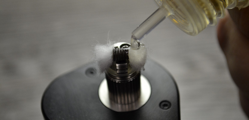 В качестве фитиля мы используем Bacon Cotton Prime, он хорошо смачивается и отлично проводит жидкость, так что если ваты будет больше, чем нужно, он простит эту ошибку и, скорее всего, не будет давать гарики.
